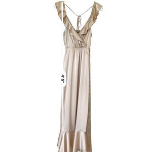 * SHOW ME YOUR MUMU Women's Tuscany Maxi Dress Bridal Gown Tie Champagne Small NEW