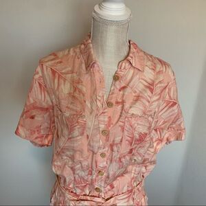 This darling romper by Show Me your Mumu has a fun jungle print in pink and white. The romper has a belt, which is present, but unfortunately the buckle is missing. I do think this is an easy fix. As such, it's priced accordingly. Otherwise, in great condition and has a lot of life left in it!