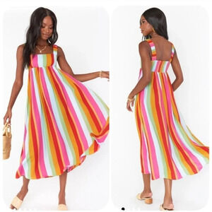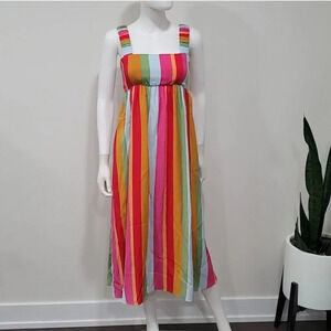 Not just a fling, but a long term love in this striped midi dress! Lightweight with thick, smocked straps and a timeless empire waist make this an easy throw and go look to bring you through all the warm weather moments this season.