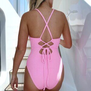 ShowMeYourMumu Positano One Piece Swimsuit, Bubblegum Scrunch