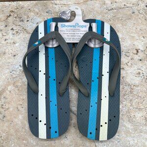 Showaflops Sandals Mens 11-12 Blue Striped Antimicrobial Slides Flip Flops