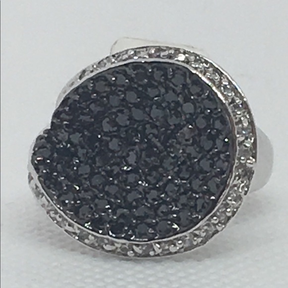 Gorgeous black and clear crystal statement ring. CZ 1.9ct.