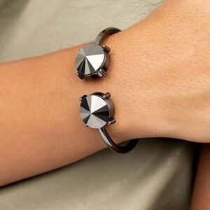 Oversized hematite rhinestones attached to a gunmetal chain.
