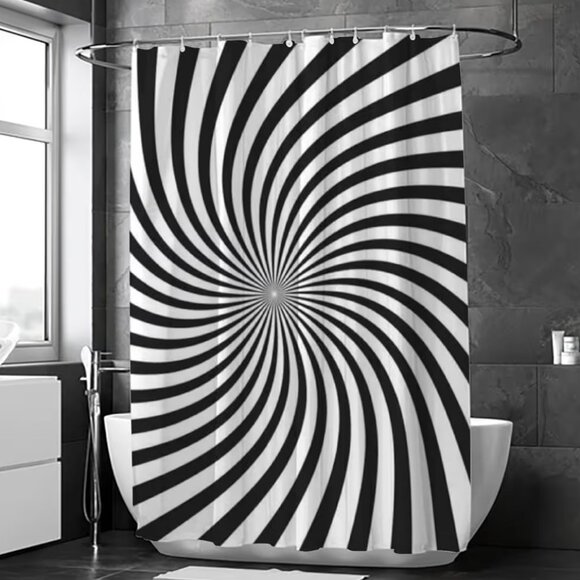 Shower Curtain Stereoscopic Misalignment Map Twilight Zone Decor Black/White