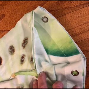 Shower curtain: 70” wide 72” long & 12 shower hook holes. NWOT never used. Smoke free and pet free home