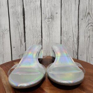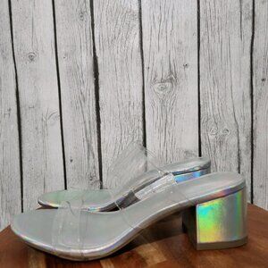 Madden Girl Heels Women's Indie-L Silver Hologram Barbie Sparkle Double Strap Sorority Whimsical Bridal Fairycore. No Longer Available Online. The heels have minor scratch marks and use on the sole, I assume from people trying on in store. I ship every day, I do not accept returns, and ask that you please view all pictures before purchasing. I am open to offers and feel free to message me with questions.