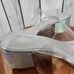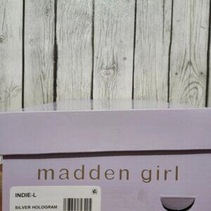 Madden Girl Heels Women's Indie-L Silver Hologram Barbie Sparkle Double Strap Sorority Whimsical Bridal Fairycore. No Longer Available Online. The heels have minor scratch marks and use on the sole, I assume from people trying on in store. I ship every day, I do not accept returns, and ask that you please view all pictures before purchasing. I am open to offers and feel free to message me with questions.