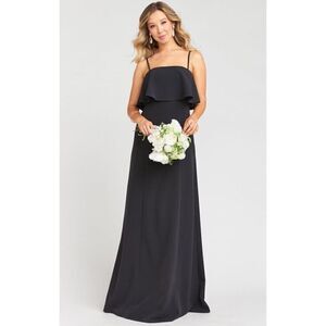 The Monaco Ruffle Gown pairs a flirty ruffle with a classic, sleek, form fitting gown. Meant to be a strapless beauty but does come with detachable, adjustable straps if you need a little extra support. Her side zipper closure paired with stretchy fabric ensures the perfect fit