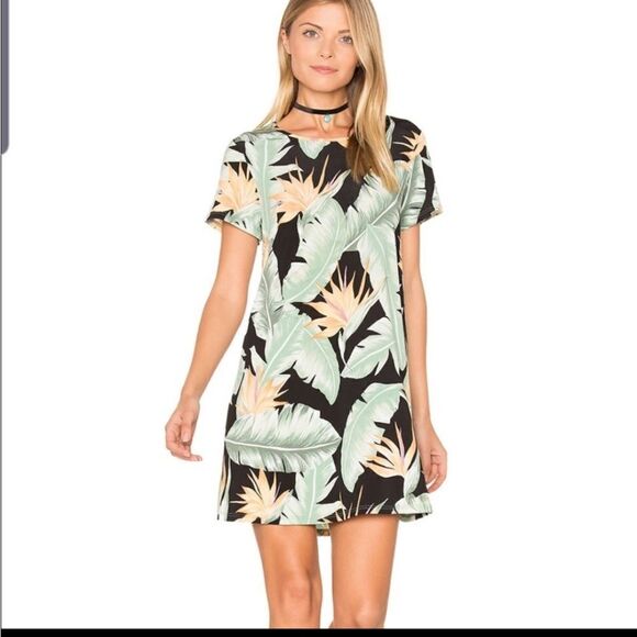 Show me your mumu em palm print mini dress size xs in good used condition with minimal wear.