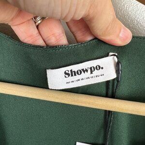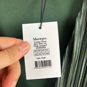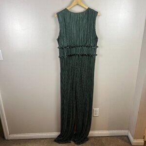 Showpo Armida Jumpsuit Size 12 Plunge Neckline Wide Leg Plisse Event Party Green