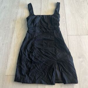 Elegant black dress. Sleeveless design. Perfect for any occasion.