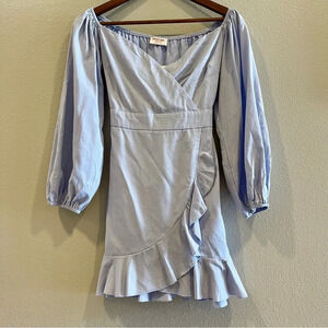 Showpo Cant Move On Dress Linen Look NWT Powder Blue Size 6 Faux Wrap