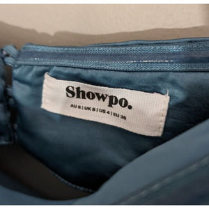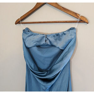 Showpo Charlita Steel Blue Maxi Dress Strapless Cowl Back Satin Dress Size 4