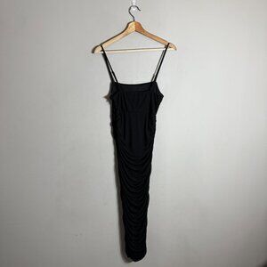 The Showpo Coming For You Mesh Midi Dress in size 6 is a sleek and stylish option for formal events like cocktail parties. This black dress features a square neckline, sleeveless design, and a zip closure. Made from a blend of polyester and spandex, the mesh fabric adds a touch of layering and the dress is designed to be slimming and flattering. With a backless and high waist silhouette, this dress is perfect for a variety of occasions and can be worn year-round. Showpo's brand is known for its sexy and sophisticated designs, making this dress a standout choice for your next formal event. Materials tag has been removed.