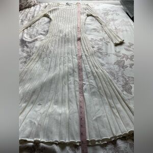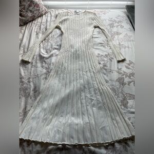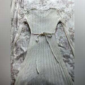 Elegant ribbed midi dress. Long sleeves. Soft knit fabric. Perfect for any occasion.