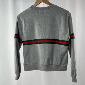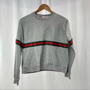 Showpo. Crew Neck Cropped Stripe Pullover in Grey