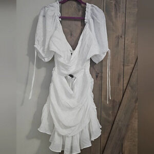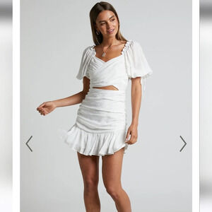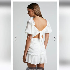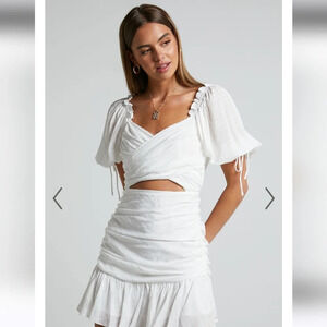 Showpo Dress Emileen Mini Dress Cross Front Cut Out Puff Sleeve Dress us 12 NWT