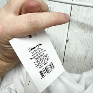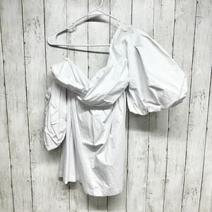 Showpo Dress Women Sz 8 Sula Balloon Sleeve Mini White Bride NWT Off Shoulder