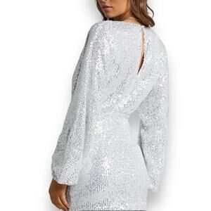 Showpo. Erine Mini Dress Long Sleeve Sequin Dress Silver 4