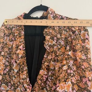 Showpo Liadi Playsuit Jumpsuit longsleeve plunge playsuit Black Floral Sz 8