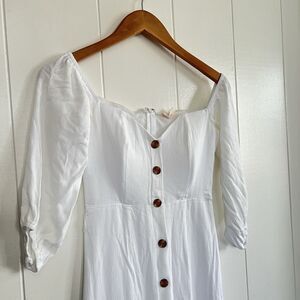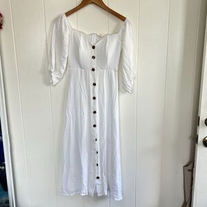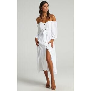 Showpo MIDI DRESS - OFF SHOULDER SLEEVE BUTTON THROUGH DRESS IN WHITE LINEN Sz 0