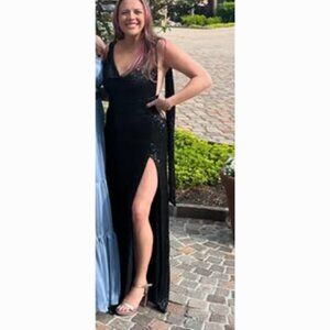 WORN ONCE GREAT CONDITION: MAXI DRESS - SEQUIN COWL NECK BACKLESS DRESS. The elegant cowl neck and sleeveless design perfectly complement the dramatic backless detail, making it a statement piece that will leave everyone in awe.