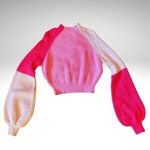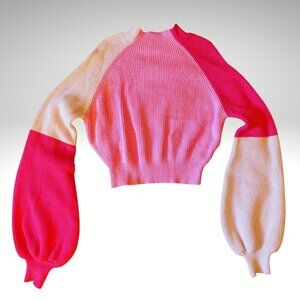 Showpo Pink Colorblock Knit Sweater Bell Sleeve Cropped Top