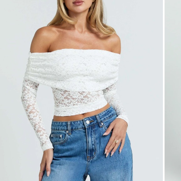 Showpo Roxanna Top - Lace Off Shoulder Long Sleeve Top NWT