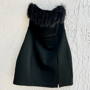 Showpo. Strapless Faux Feather Trim Rhaiza Mini Dress Black Women's Size US 2