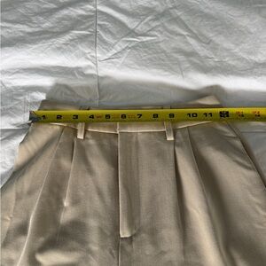 Step up your office or everyday style with these classic tan high-waisted trousers from Showpo. Designed in Australia, these structured wide-leg pants feature front pleats, a secure zip and hook closure, and belt loops for versatile styling. The neutral beige/tan tone makes them perfect for pairing with blouses, blazers, or crop tops. Waist measures approximately 12.5” flat (25” total). Lightweight fabric with slight stretch.