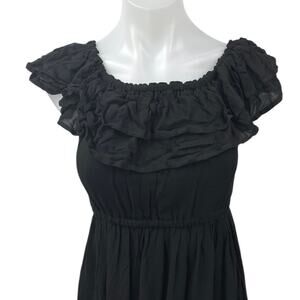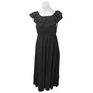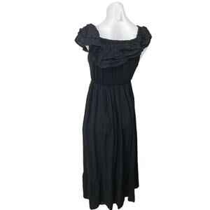 Showpo Women's Black Ruffle Off The Shoulder Empire Midi A Line Dress Size 4