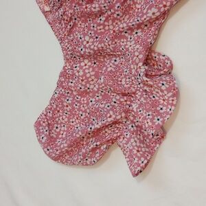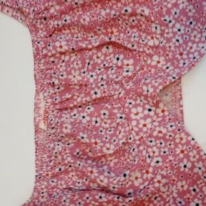 Showpo Women's Crop Top Sz 2 Pink Floral Resort Beach Party Summer Puff Sleeve