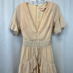 Showpo Womens Dress Blush Swiss Dot Short V Neck Layered Ruffle Cottagecore 6