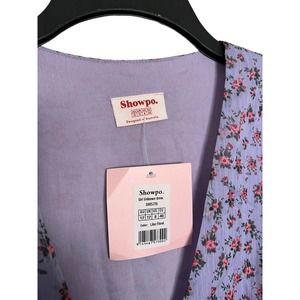 Showpo Wrap Dress Purple Floral Print V-Neck Short Sleeve Tie Waist Size 8.