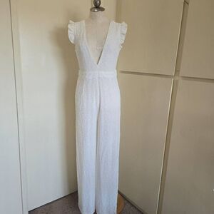 Showpo "If You Wanna Jumpsuit", White Lace, Deep V Front/Back, NWT, Sz. 8