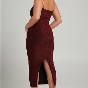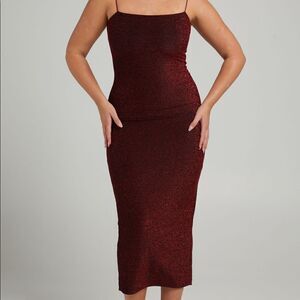 Our Keep The Party Going Dress is ideal for just that! It's crafted from a stretchy lurex fabric designed to fit snug on the body and highlight your most fabulous curves. It's suspended with spaghetti straps and an alluring square shaped neckline then finishes at a midi-length hem exposing a sexy thigh-high split. Finish off with a pair of fierce strappy stilettos to make a striking statement.