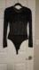 Fun sparkly black mesh studded bodysuit. Perfect outfit for a festival or the NFR. It is made of lightweight material and is very stretchy. Crew neck and long sleeves. Bottom closure is adjustable with a three hook clasp. Size M. *Please note the photo that shows the bodysuit being worn is with a black undershirt underneath- it is fairly see through without an undershirt.