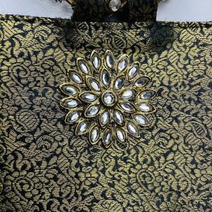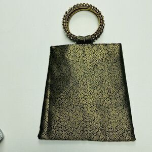 Shraddah Jeweled Evening Bag Gold Paisley Gold Tone Bracelet Handle Rhinestones
