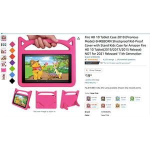 Shreborn Fire HD 10 Pink Cat Ear Tablet Carrying Case Kid Proof 11 Generation