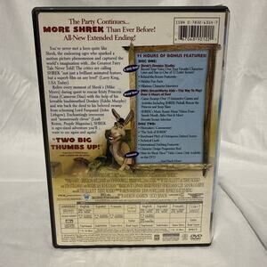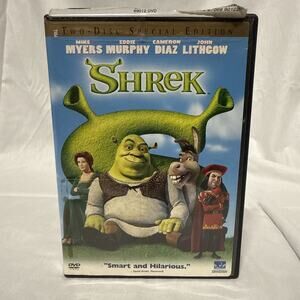 Scratches noted on the back of the disk. Sold as is. The product is a special edition 2-disc DVD set of the popular animated comedy film "Shrek," released in 2001. Directed by Vicky Jenson and Andrew Adamson, the movie follows the adventures of a lovable ogre named Shrek as he navigates the challenges of life in a hostile world. With a G rating, this special edition DVD set provides viewers with additional features and content related to the film, making it a must-have for fans of this beloved animated classic.