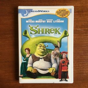 A hilarious sweet-hearted and charming comedy featuring a lovable big-eared green ogre named Shrek, this fully-computer-animated fantasy from Dreamworks, the creators of 'Antz,' stars Mike Myers in the central role. Cameos from favorite fairy-tale characters Big Bad Wolf, Three Little Pigs, and the Three Blind Mice grace the storyline as refugees cast from their homes by an evil Lord Farquaad, voiced by John Lithgow. Based on the children's book by William Steig, Shrek features additional voice-