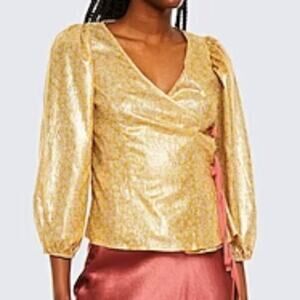Shrimps Cordelia Floral print Lamé Wrap Blouse In Gold 8