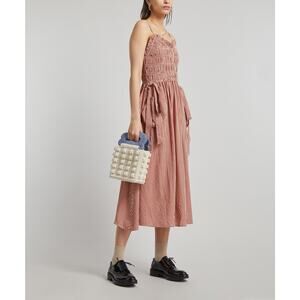 Shrimps Liberty Gingham Print Smock Midi Dress - 6 Red/Cream