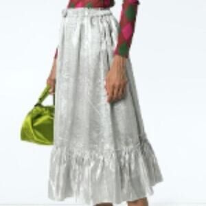 Shrimps Pearl Belt Metallic Midi skirt In Silver