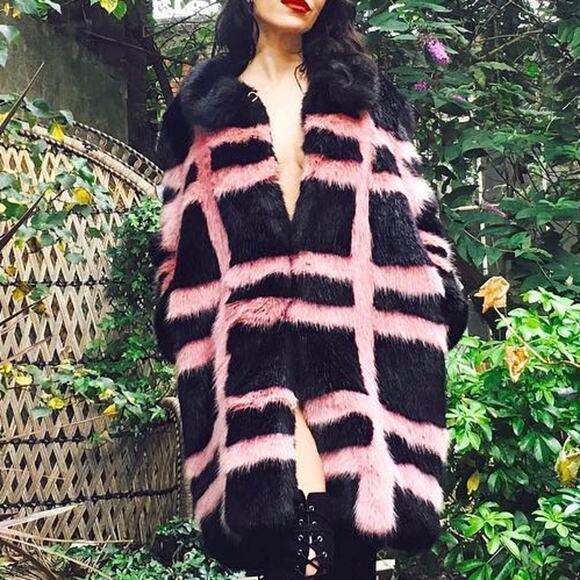 #PinkAndBlackCoat #LuxuryWinterStyle #UKDesignerFashion #ArchiveShrimps #FauxFurJacket