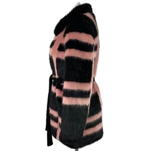 Shrimps Pink Black Plaid Faux Fur Coat Women’s M Short Modacrylic