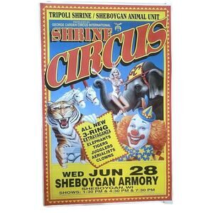 Shrine Circus Poster Sheboygan Armory June 28 1994 14" x 22"