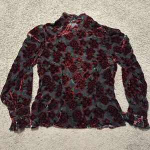 Shrine of Hollywood Antoinette Gothic Floral Rose Velvet Ruffle Long Sleeve Sz M
