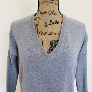 Shrinking Violet Gray Cotton Wool V Neck Side Slits Oversized Sweater Size XS