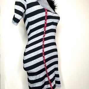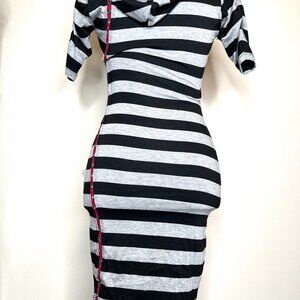 Shrinkle Fur Skull Hoodie Dress Size Small Black Gray Striped Studded y2k Punk Goth